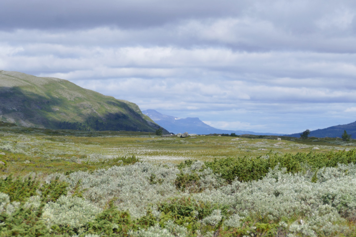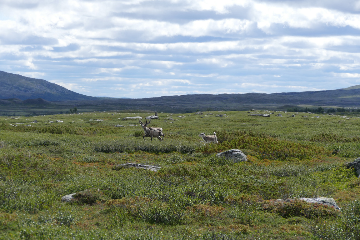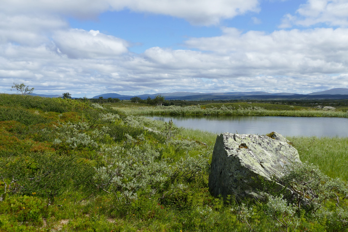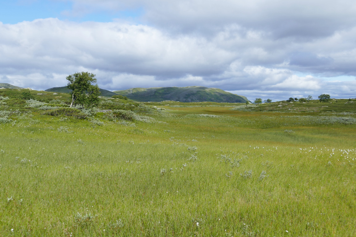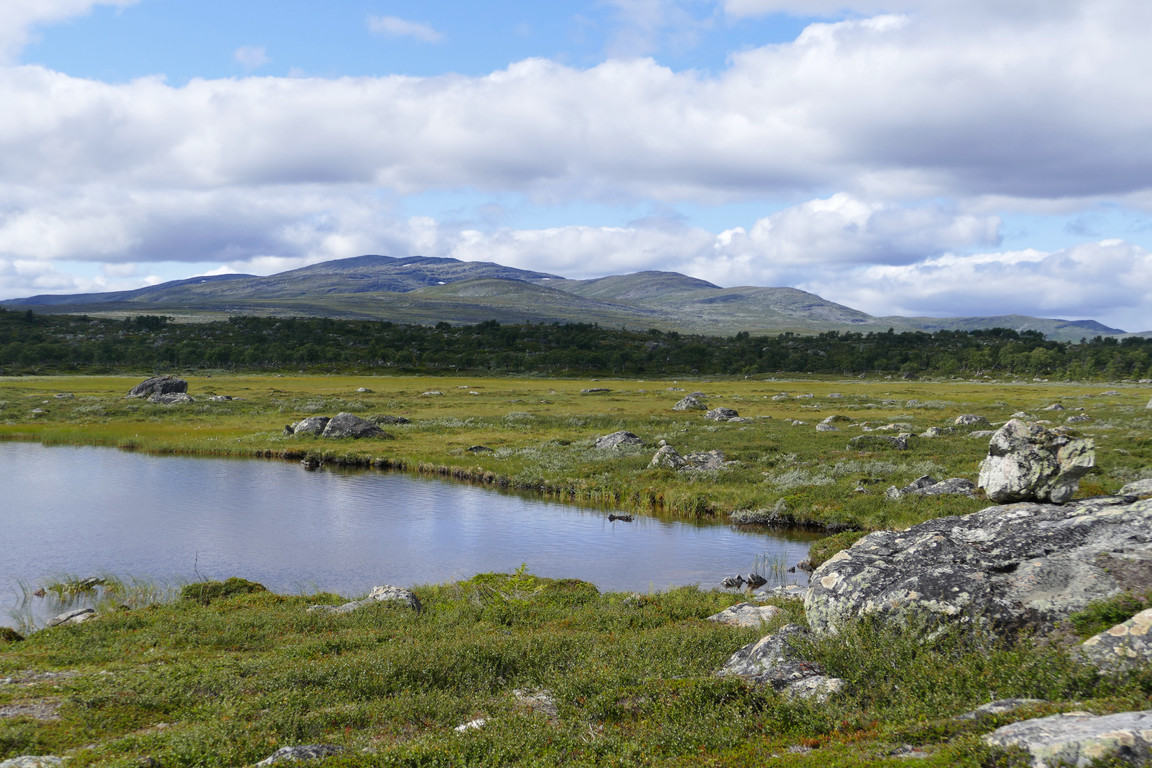 I pulled out my earplugs and started listening to the web radio transmission of the Olympic pole vault finale, where our own Armand Duplantis was almost sure to win the gold. I also put on the down jacket against the wind, which was quite strong, and whenever the sun was clouded (which it often was) it was rather chilly. Apart from a bird or two the only other living soul I saw was a reindeer which lay resting on a nearby crest. When I got going again I followed the continuation of the grassland, which was almost entirely flat, and had no trouble hitting the next group of pools I was aiming for.