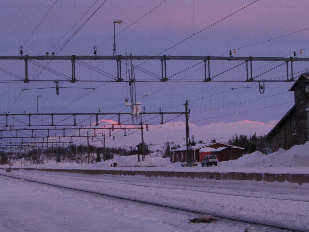 I was alone inside, and removed the excessive clothing at once. I went on to read for quite some time, before stuffing my stuff into a corner and going to the restaurant in the adjacent building to have a pizza. When I came back there were two Norwegians waiting for the Trondheim-bound train, and I played some solitaire before my train from Trondheim arrived – on time.