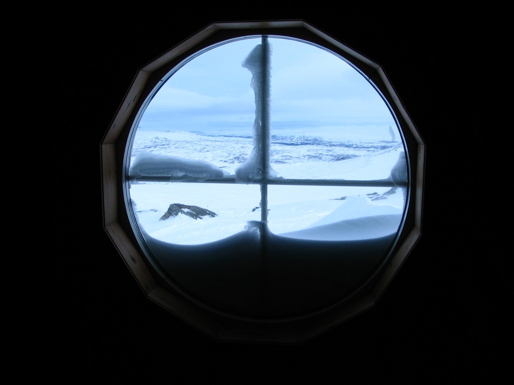 Being early in the season, there were fairly few people around, so getting a bed was no problem. I opted for one in the room of eight, since those are the cheapest, and there was just one other person there – a lone guy of about my age, something which I have come to realize is somewhat unusual. I went on to have a sauna; alone at first, but my roommate joined me after a while. Following that and some general winding down, I bought a soft drink, prepared food and sat down to eat in the large dining room, which on a clear day provides an impressive overlook of the entire Sylarna massif, but now everything was just white.