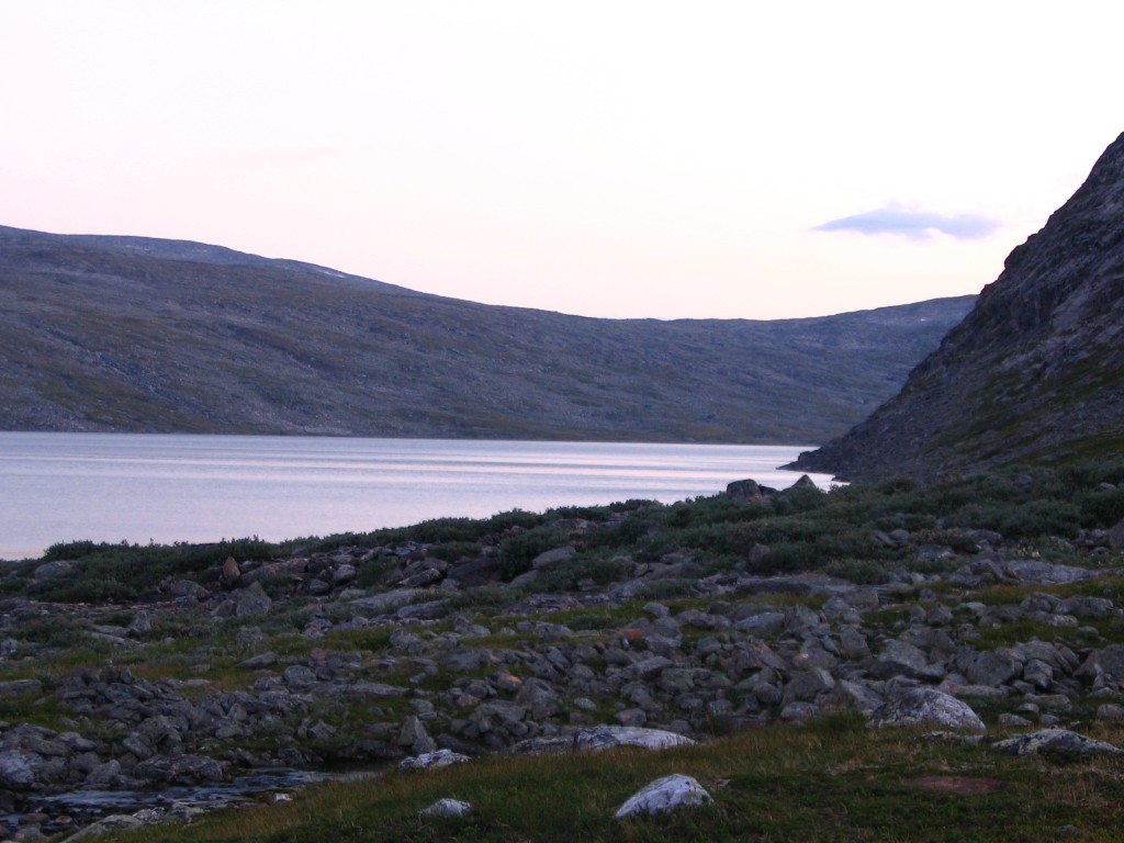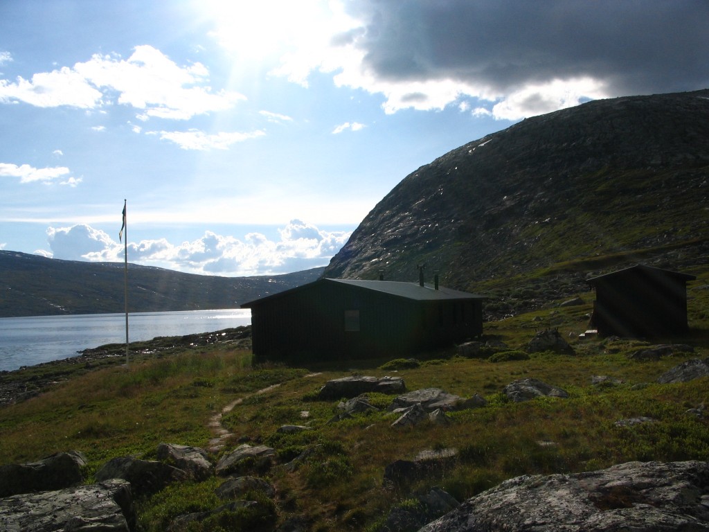 This warden was somewhat unusual in the sense that she was a young woman of my age – the norm is otherwise weathered, elderly, retired or close-to-retirement individuals. I performed my mail duties and we took care of the economic formalities right away, and then she was off for a swim. The weather was still fair, but there were extensive cloud covers to the north and east. Then the pair whom I had seen came down at last; they were obviously German originally, but spoke Swedish well enough. They only paused for a brief while, though, before going on towards Kurajaure at 18, when I started preparing my dinner.