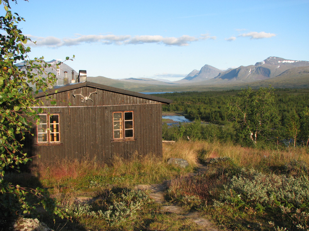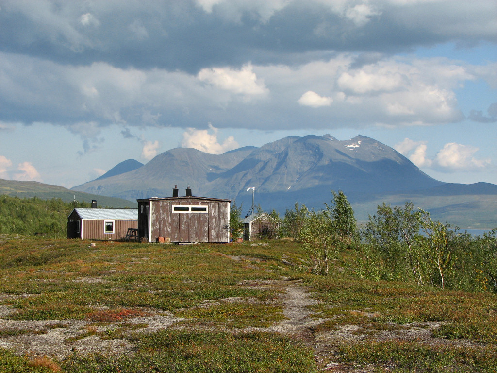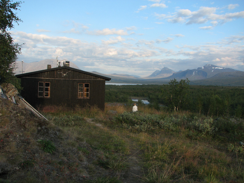 I had a snack on the porch, finding the cake to be excellent, and after I had taken care of the dishes from the morning the others came back. I greeted them outside with a piece of cake each, which was the perfect finale for them; they had done a similar tour as I had done a week earlier and were more than satisfied with how it had turned out. It was still warm – 20°C – and it was a relief when the sun finally passed behind one of the amassing cumuli. Cloudiness increased throughout the evening, so the outside temperature only slowly dropped. I talked for a long time with the two women, who were to be the only guests also this night, speaking much about my recent Sulitelma tour. After my evening snack I happened to catch a radio program about/with limericks, and I listened to that for a bit after going to bed.