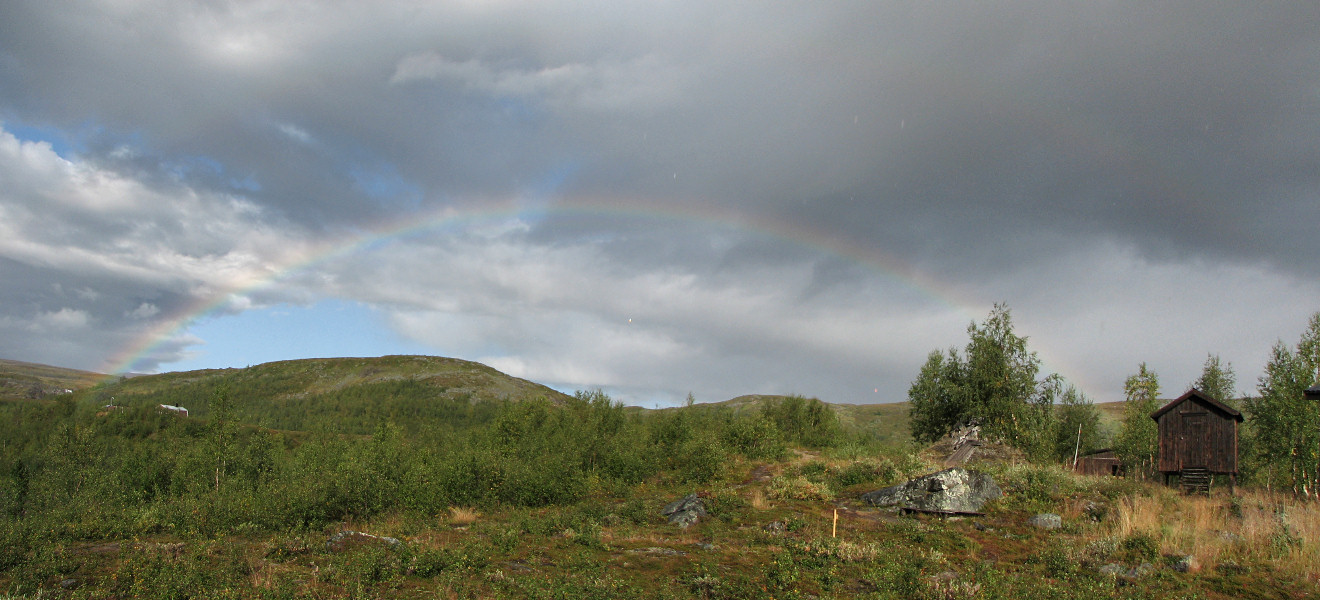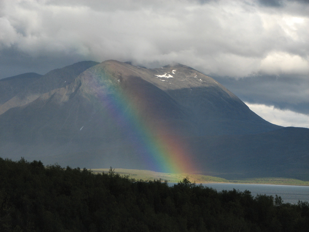 Glancing out the window I then saw an incredible rainbow before Áhkká and rushed out to imprint it electronically.