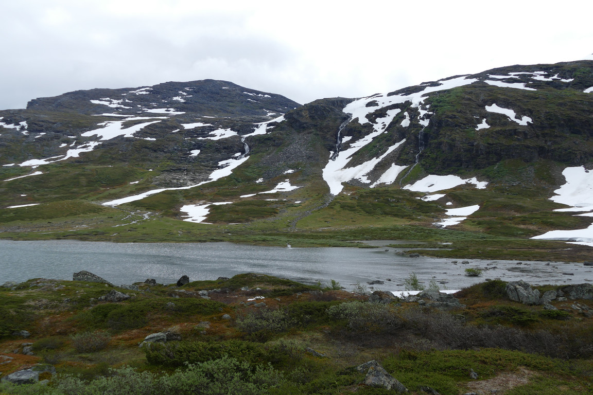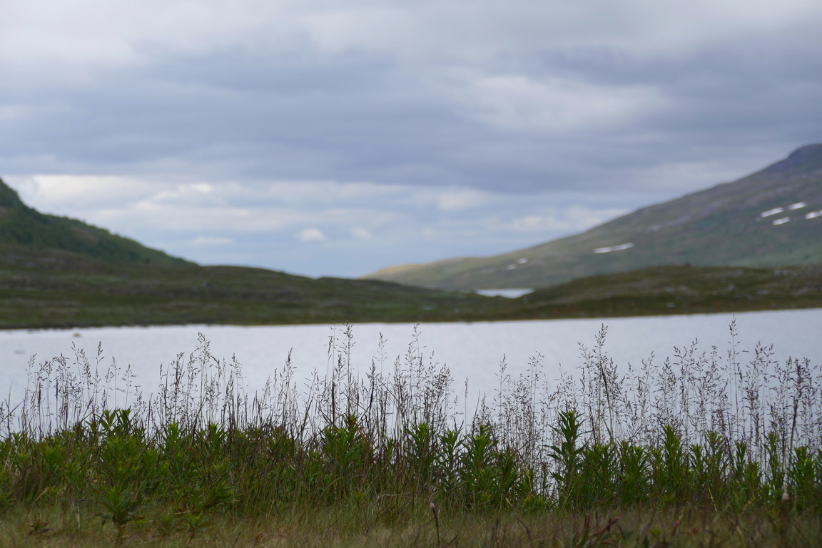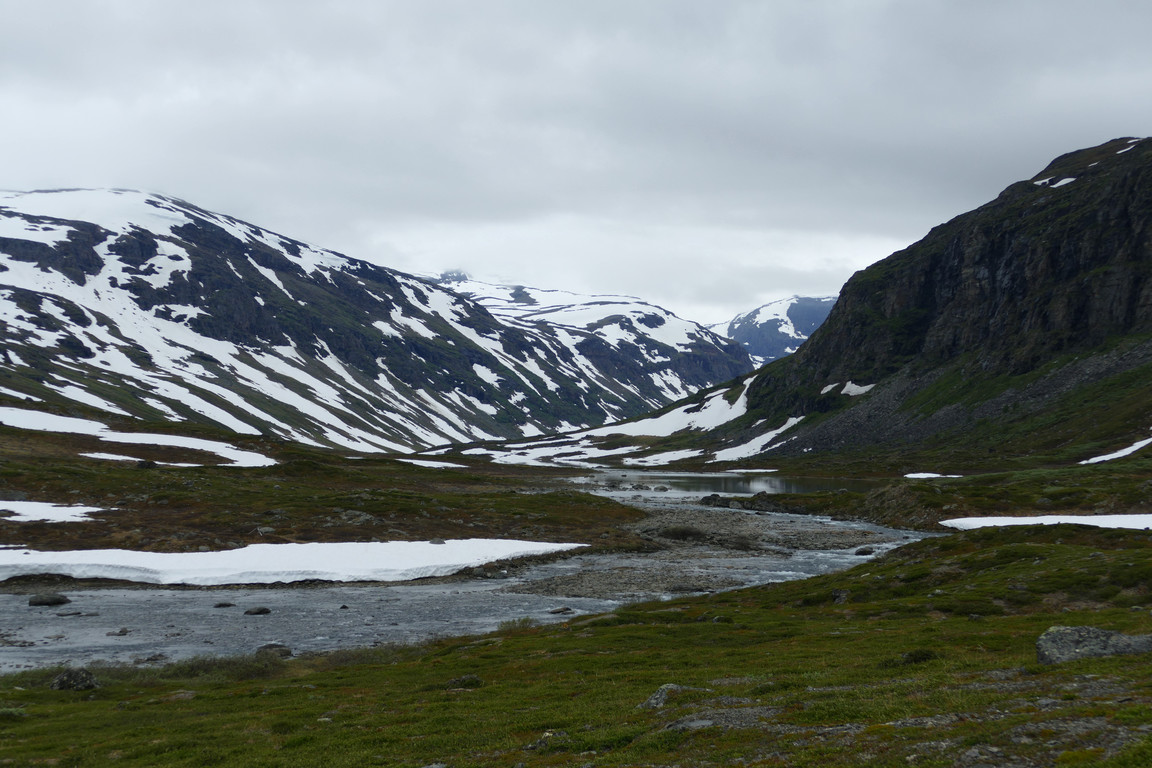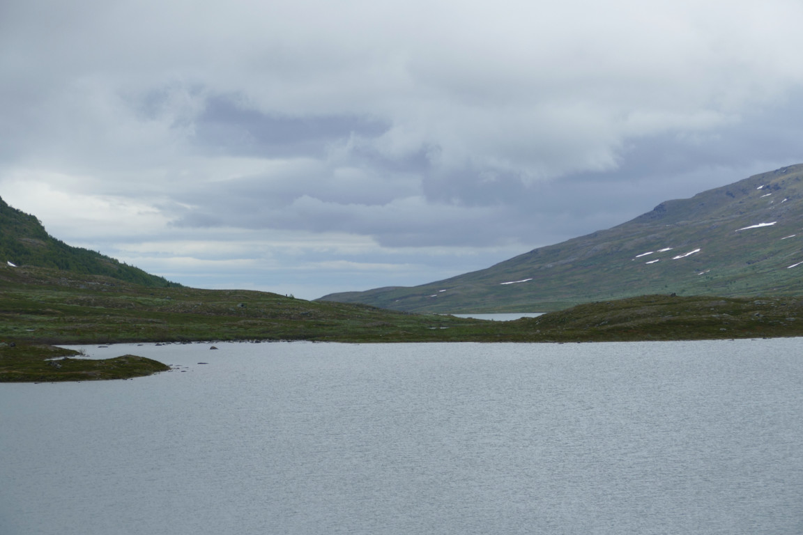 It was another dreary-looking day from the start, with a bit of light rain, but as the morning progressed it grew a bit lighter. Having furnished the family with makeshift walking sticks for the kids I watched them take on and complete the ford without too much hassle. The trio were heading out for a day tour up the valley, and the two tenters soon left for Abisko taking the high route across the northern rises. Soon the other campers were finally on the move as well, and I sat down for lunch in solitude.