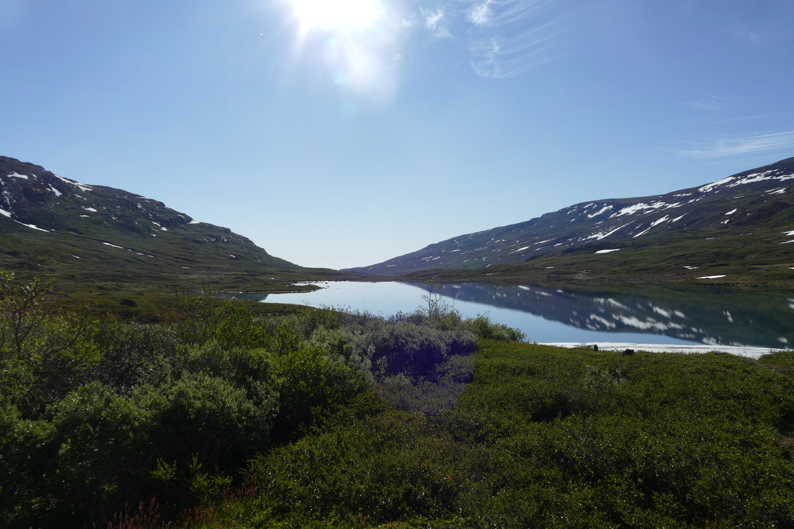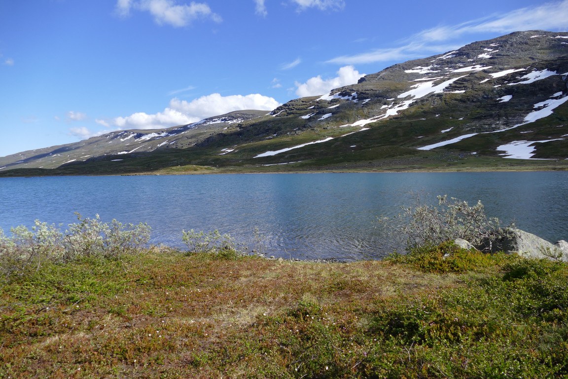 As expected/hoped the morning was clear and almost still, so I prepared for a day tour before going over to check on the Danes. They were early birds and were already preparing to leave themselves, so I could clean the place out at once. It was already quite warm in the sun, so I expected today's plan of going over to Abiskojaure and back to involve quite a bit of drinking. At 09:15 I was done with everything that needed doing, and set out for the ford.