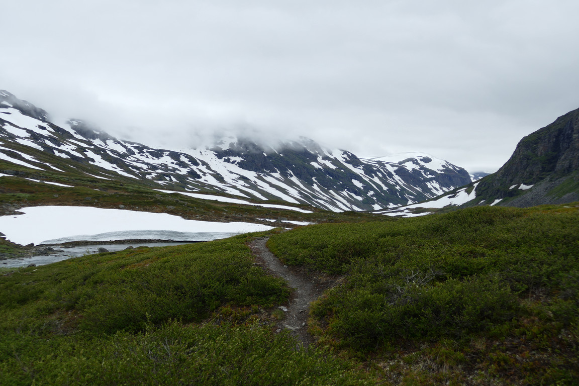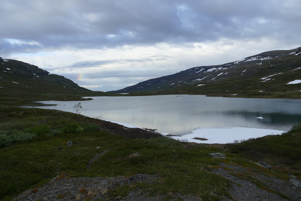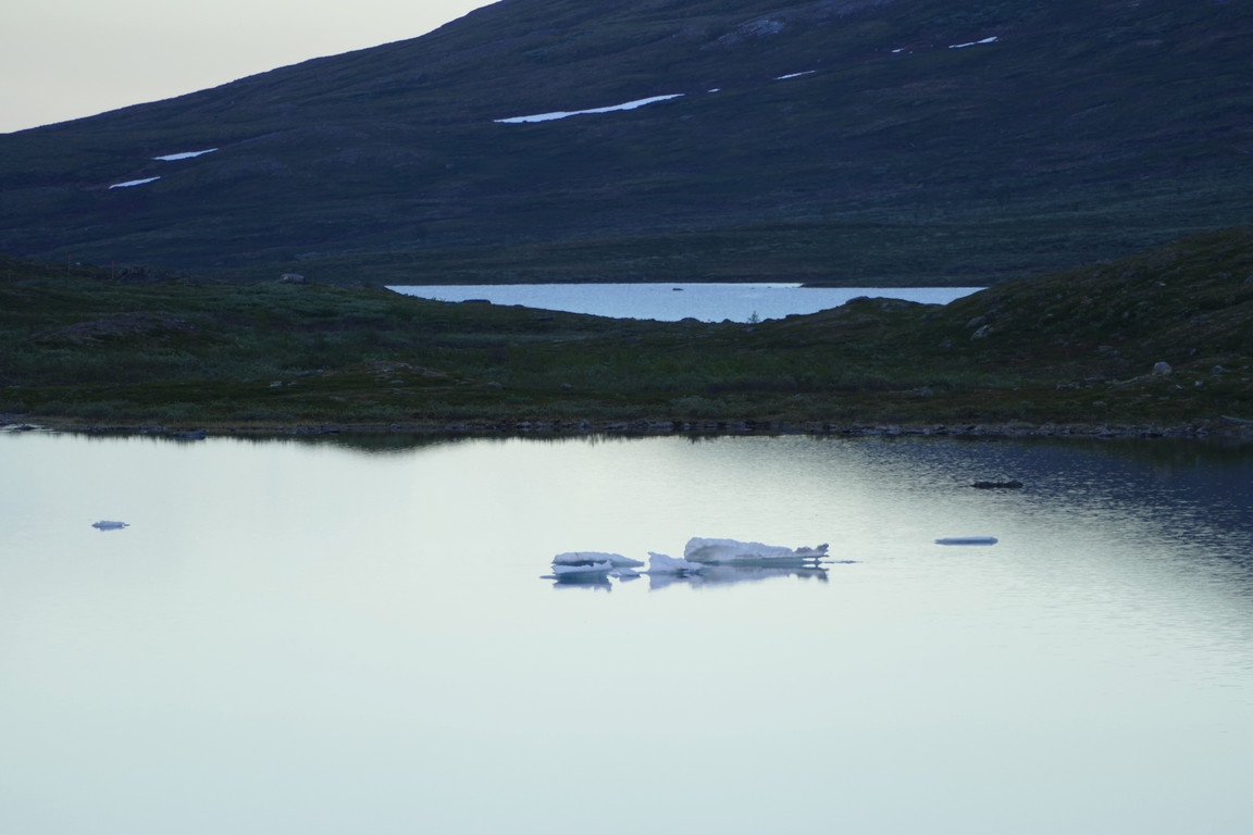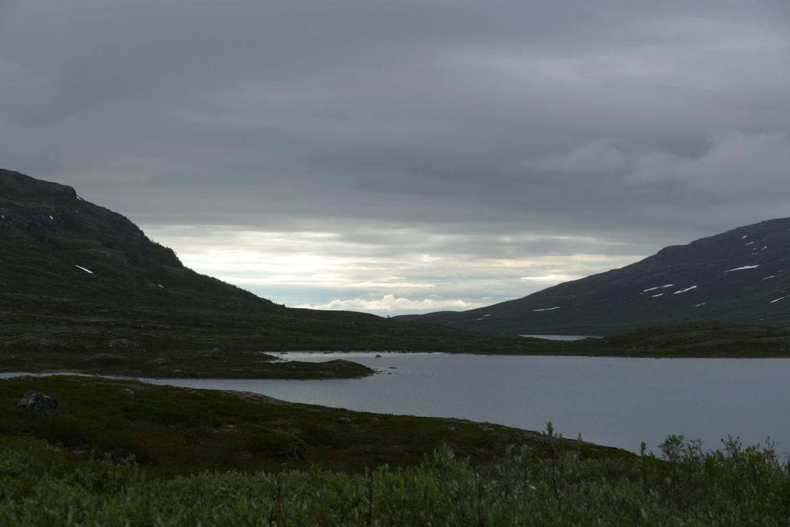 The evening saw more and lower clouds again, and it was indeed chilly. I had seen a couple of people approaching along the winter trail, but in the end they found the summer path; apparently they had walked most of the stretch through the valley along the former route, and were understandably fatigued by all the osier thickets this involved. They had a reservation for the night, so I showed them in and gave them some pointers (literally) about the way to Abiskojaure which they were to take the following day, after which there was nothing much to do but go to bed myself.