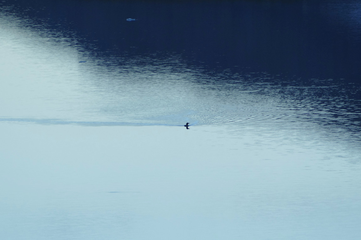 I went down to the same place as usual and tried to reach the appearing circles, but being unable to quite do so I soon changed to a heavier spinner and waited for another appearance. This did the trick, and I had one on almost immediately; it turned out to be a semi-large arctic char that would do nicely for dinner (and some to spare). The whole outing had taken less than a quarter, but since the objective was now met and I needed no more this day I simply brought up my catch and gutted it outside.