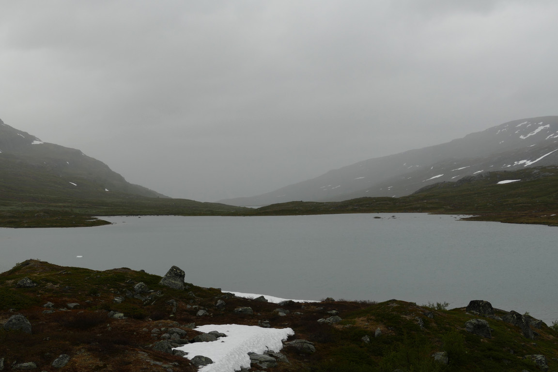 It was a bit lighter in the evening, but this was quickly reversed when a rain haze sped out from the inner parts of the valley. Yet another camping pair arrived and eventually pitched their tent up on the nearby hill, after which I had to go quite far upstream to fetch two new arrivals from Abiskojaure who were also confused about where the ford was supposed to take place; they had a tent but given the unstable weather they requested beds and were let in at least for a while.