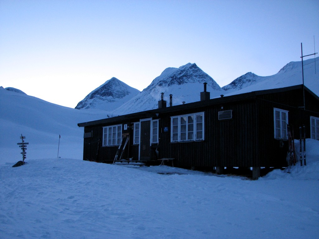 The two people I had seen up on Reaiddájávri took their sweet time coming down to the cottage from the moment I spotted them, and the reason turned out to be randonnée equipment. The persons themselves were Belgian and were going to stay for two nights before continuing towards Nikkaluokta. Then two Swedes came from the direction of Vistas, and one of them turned out to be the cousin of the dog-woman; they had gone by snowmobile up to the border of the restricted area down in Visttasvággi and continued on ski from there. They were not staying, however, but just wanted to rest for a while inside before returning to their vehicle. After they had left two others came from the other direction, and they would not be staying either; they had started from Vistas in the morning, gone up Unna Reaiddávággi past Unna Räita, and were now on their way back. Another two people came down – warily – in the northwestern slope, and once the breaking ones had left the nocturnal number was fixed.