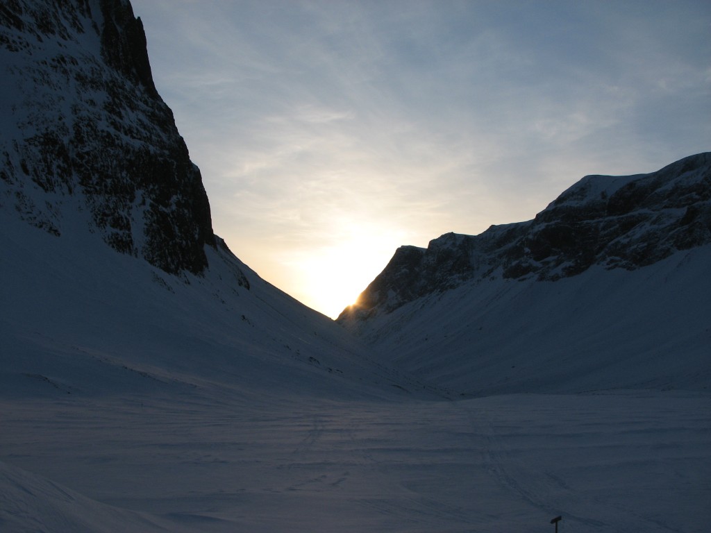 While I was preparing dinner the two scouts came back with the conclusion that it would be tough but doable, and after I had eaten they started loading me up with a whole lot of things (mostly food and candy) they felt would make their burden lighter not to retain. I talked for quite a bit with both the group and Erik – we of course had a lot of shared experiences to, well, share – while outside it had started to snow lightly. At one point the clouds broke apart right above and some weak aurora could be seen, but nothing much came of it. By the time most of us were preparing to go to bed, however, the sky had cleared completely, and now the northern lights could do their thing unhindered, even if it was nowhere near as intense as the previous night.