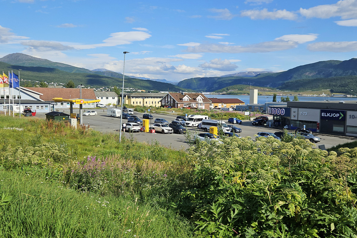 At Mo i Rana the weather was entirely fair, and soon thereafter we passed the Arctic Circle, which was a bit of an event with a speaker-announced view of a monument and all. The outside temperature had quickly risen to a sweltering 26°C, and it was indeed quite warm when I got off in Fauske on schedule.