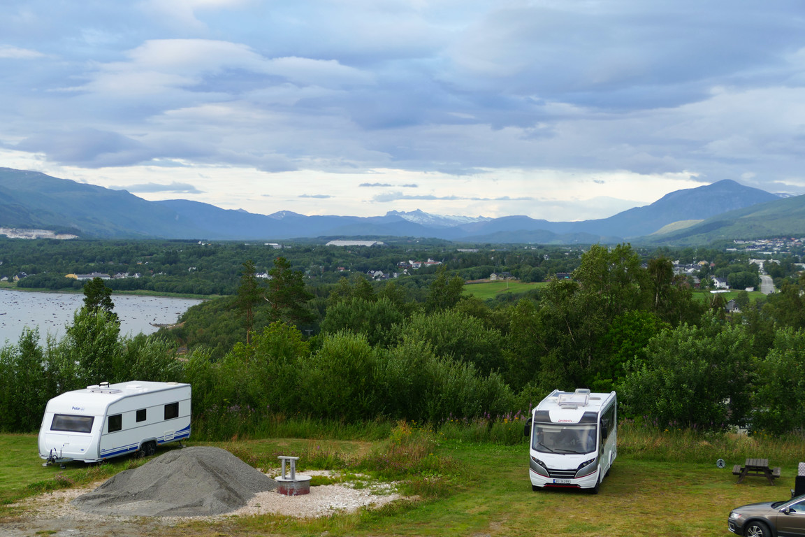 I walked a planned route westwards through the town, and while it was very warm and the pack at its heaviest it was manageable, and from time to time there was even a slight wind. I continued out onto the peninsula southwest of town, upon which lay something which looked very much like an observatory. I didn't walk that far, however, and reached Lundhøgda Camping somewhat quicker than anticipated, even though it had been a bit of a slog that ended with an uphill stretch – and I was sweating profusely.