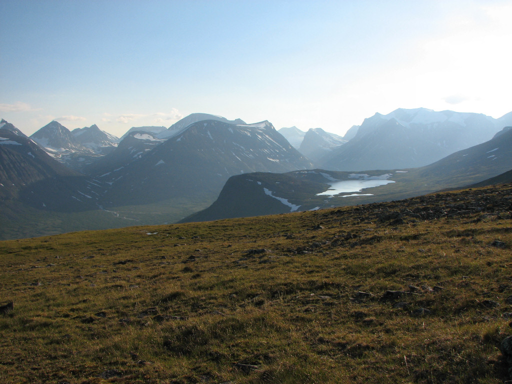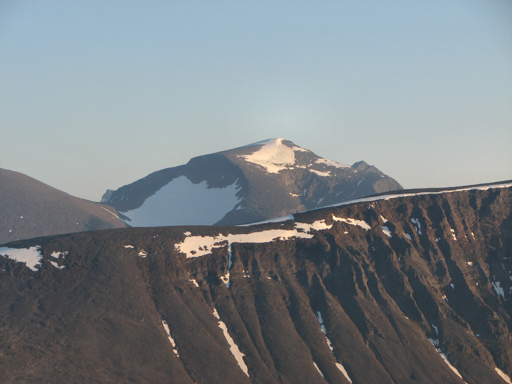 I had rather a full dinner inside while another mighty haze enveloped the Nikkaluokta area, and more rain was also coming in the west, but none of it reached my location. I read and rested in the tent until the clouds started to break apart, and then went out to just be. It was a perfect evening – or would have been had it not been for the mosquitos that had found their way there with the loss of the wind – and I enjoyed it to the fullest. The sky was now completely clear and when the sun passed behind Jorbaoaivi proper the air grew pleasantly cool (well, relatively so), and it was with a fair deal of reluctance that I turned in at 22:15.